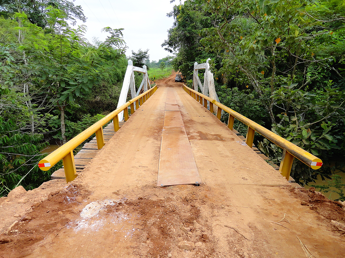 Ponte EcoMix, ponte mista de concreto e estrutura de aço, com 25 metros de extensão e 5 metros de largura, instalada no município de Alto Alegre Dos Parecis, Rondônia.