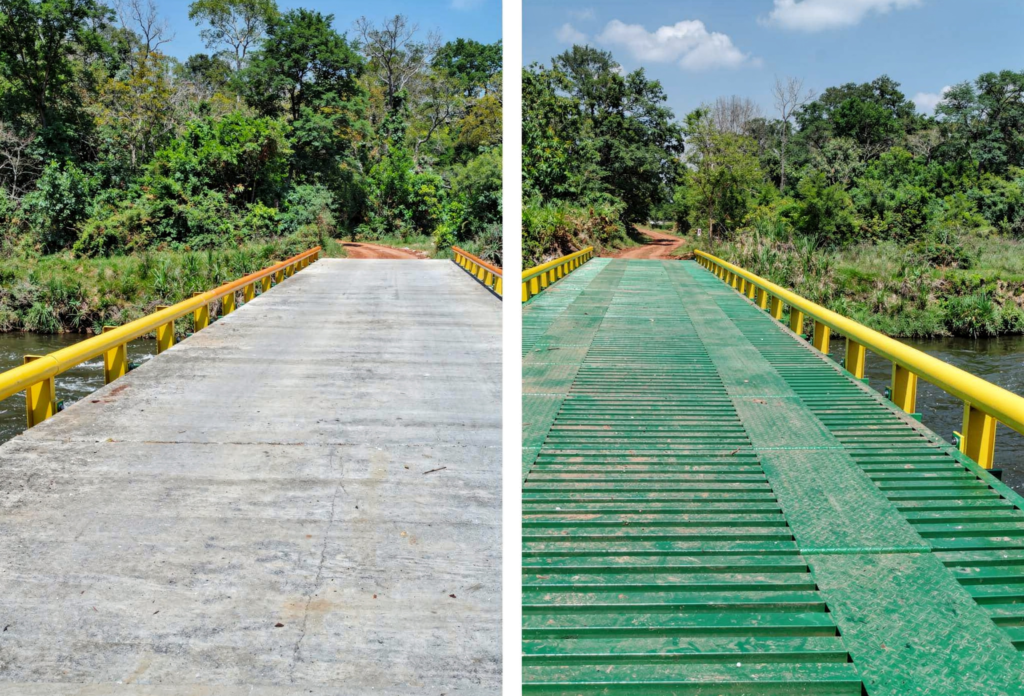 Acessos internos entre talhões, pontes em ramais secundários, travessias usadas intensamente apenas na safra — nesses casos, a robustez da laje de concreto pode ser superdimensionamento.