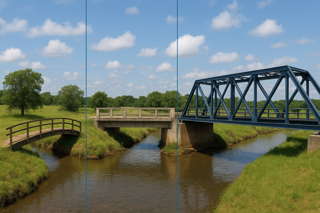 O Mito da Ponte Barata: Por Que Concreto e Madeira Parecem Acessíveis, Mas o Aço Ganha no Longo Prazo