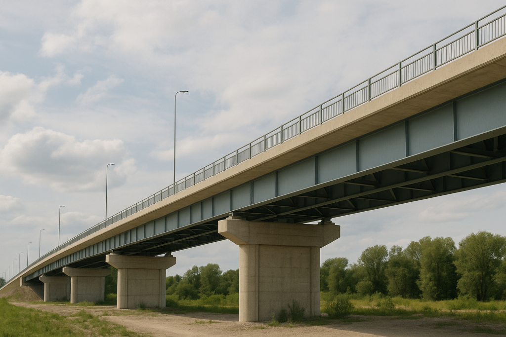 - Pontes mistas aço-concreto: Combinam vigas de aço com lajes de concreto