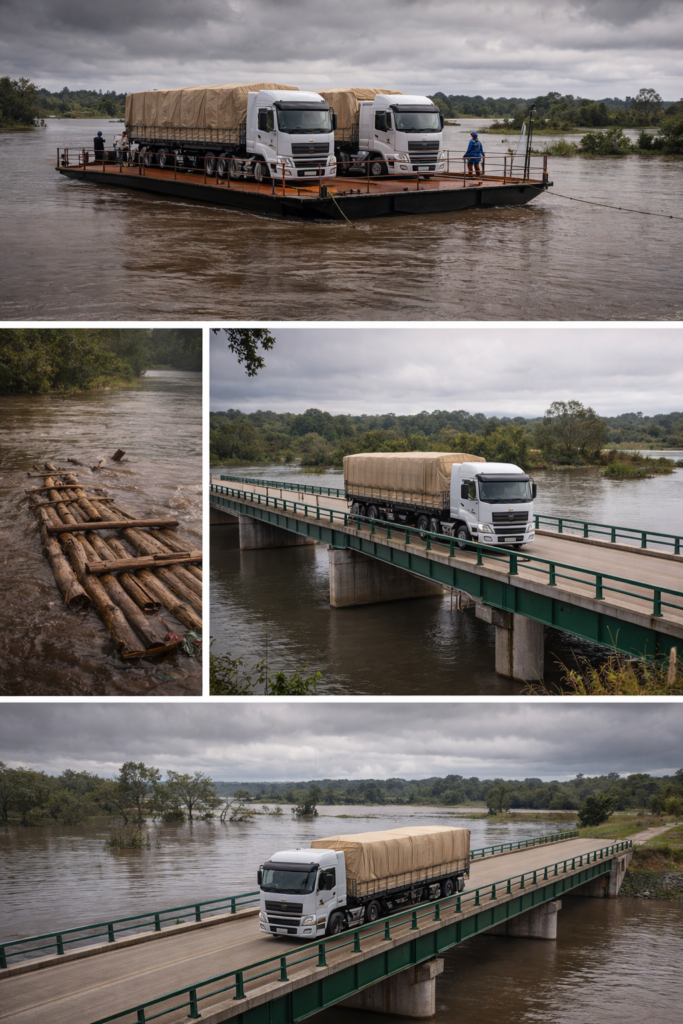 Quando a operação depende de balsa — e como pontes mistas resolvem o que concreto e madeira não conseguem em área alagável