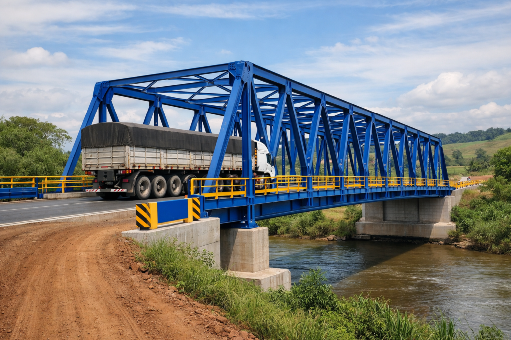 Além disso, a rapidez de instalação das pontes metálicas permite que novas travessias sejam implantadas em prazos compatíveis com a urgência das demandas logísticas, sem longos períodos de obra.